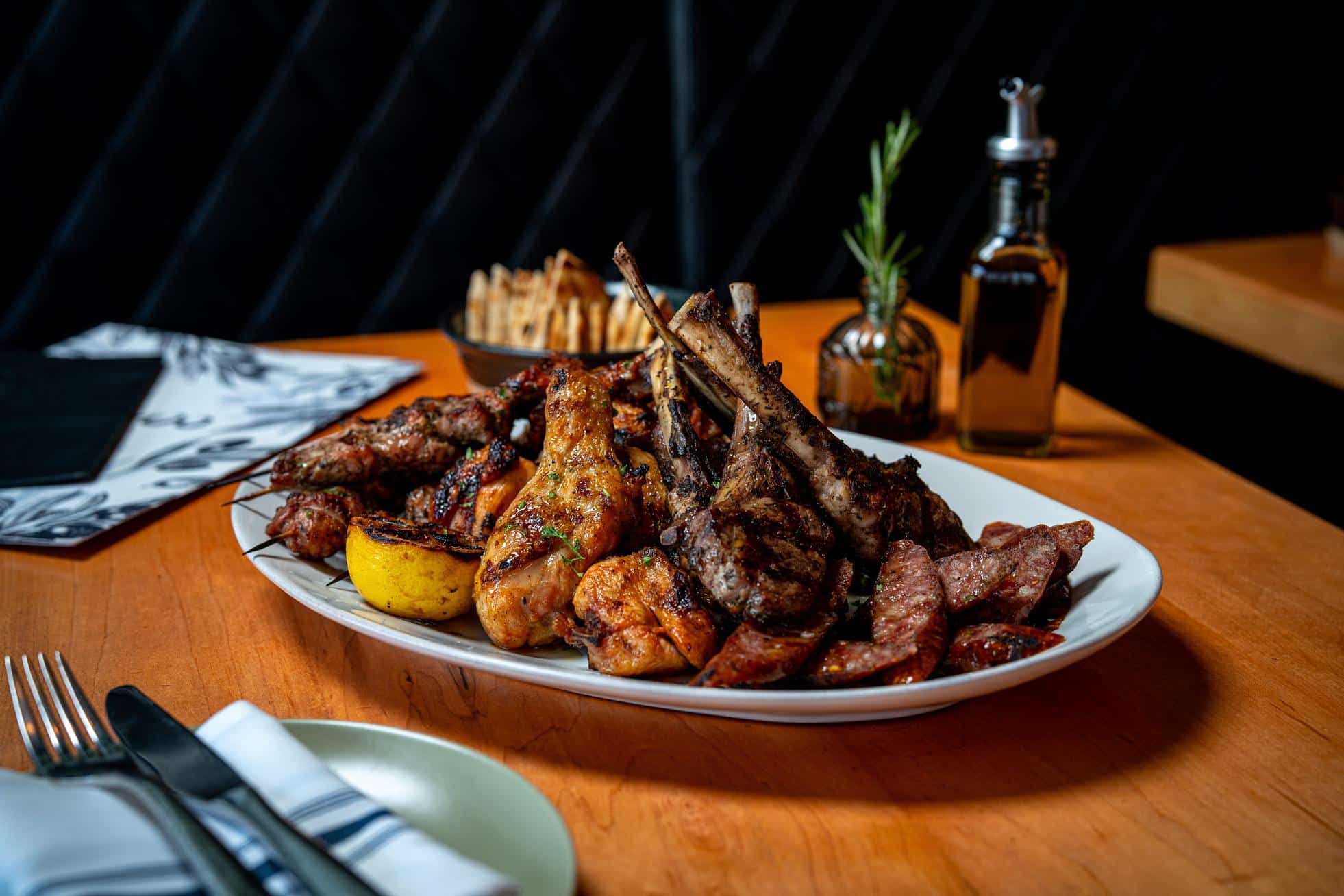 Lamb chops, chopped chicken, loukàniko, pork souvlaki